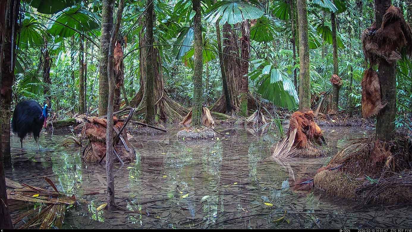 Camera Traps – February 2026 accrued 219-cassowary sightings, 32-dingoes and 131-feral pigs. Against the cumulative monthly average, cassowary numbers rose by 113%, dingoes decreased by 22% and feral-pig numbers also fell by 32%. Against February 2025, cassowary sightings decreased by 11%, dingo numbers diminished by 3%, whereas feral-pigs fell by 24%.