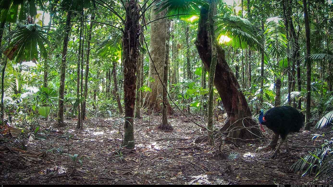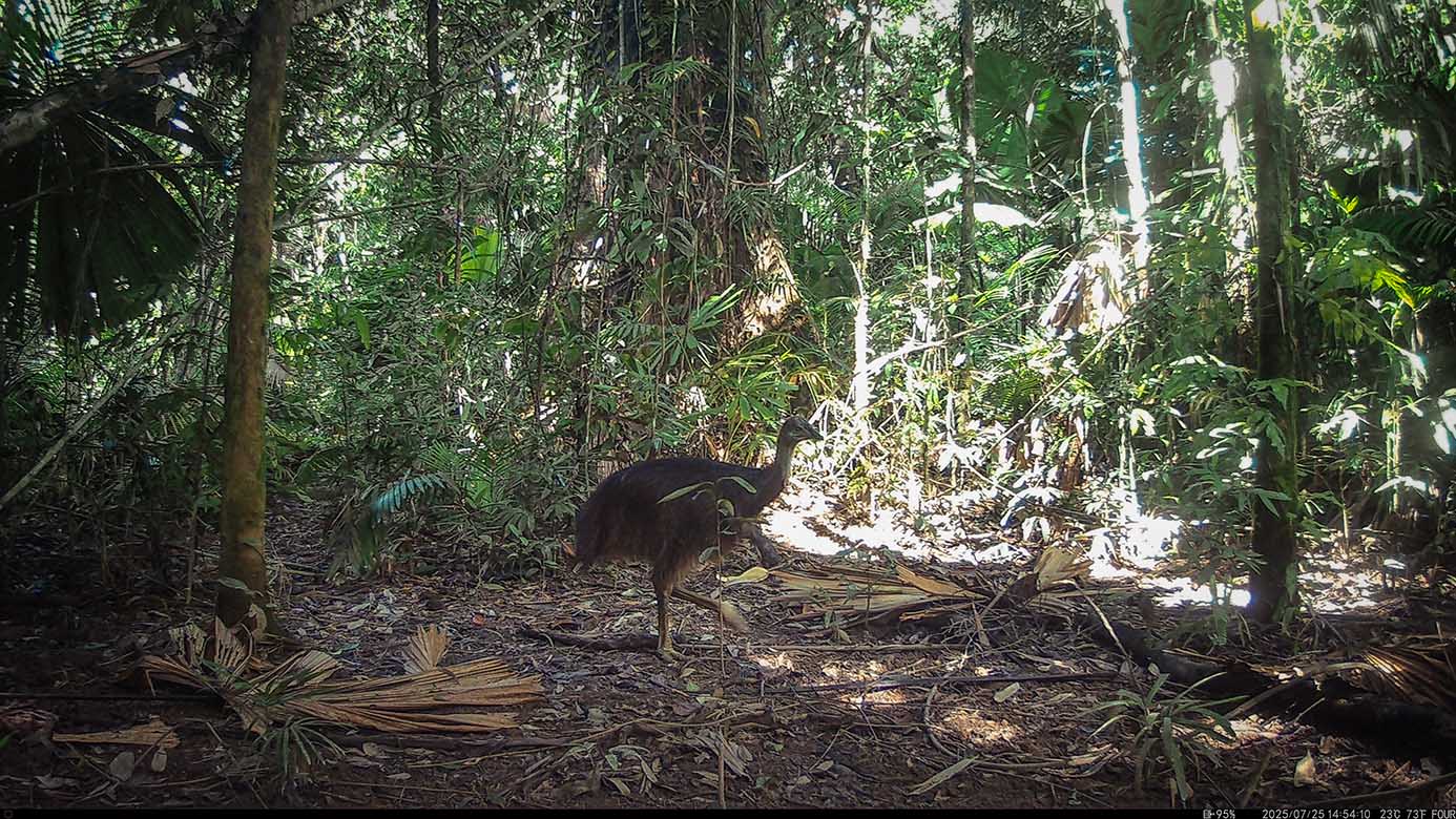 Camera Traps – July 2025 accrued 48-cassowary sightings, 39-dingoes and 81-feral pigs. Against the cumulative monthly average, cassowary numbers fell by 53%, dingoes diminished by 4% and feral-pigs dropped by 64%. Against July 2024, cassowaries dropped by 56%, dingoes also fell by 37% and feral-pigs plummeted by 94%.