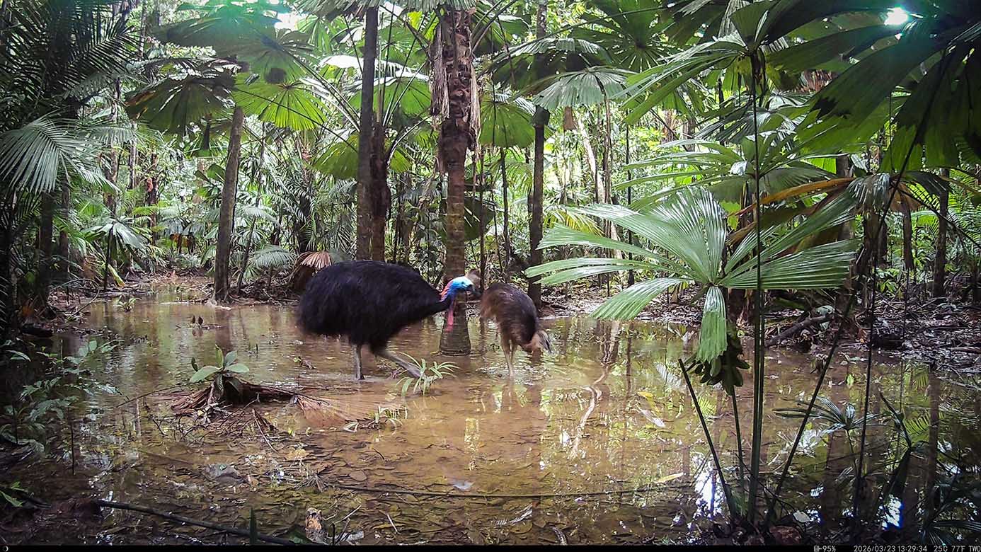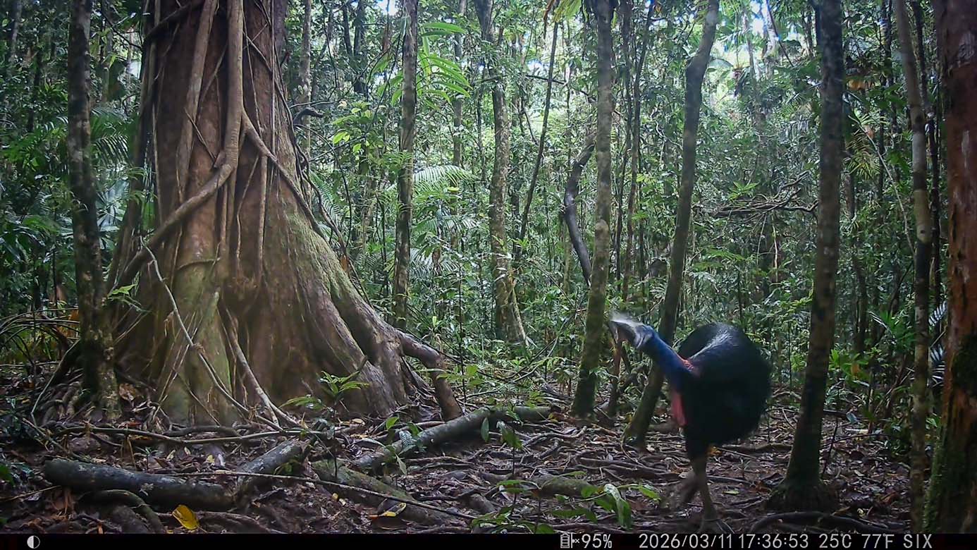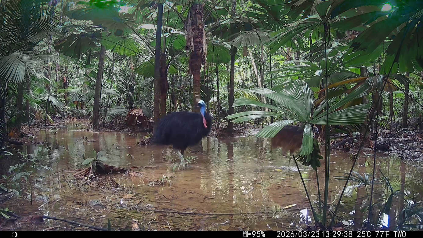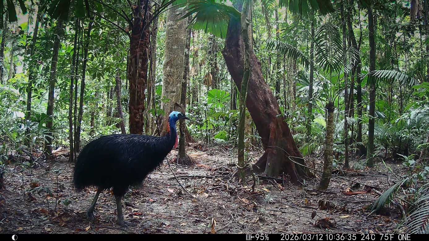 Camera Traps – March 2026 accrued 50-cassowary sightings, 28-dingoes and 95-feral pigs. Against the cumulative monthly average, cassowary numbers dropped by 51%, dingoes fell by 31% and feral-pig numbers diminished by 50%. Against March 2025, cassowaries were seen 74% less frequently, dingo numbers rose by a mere 4% and feral-pig numbers plummeted by 77%.